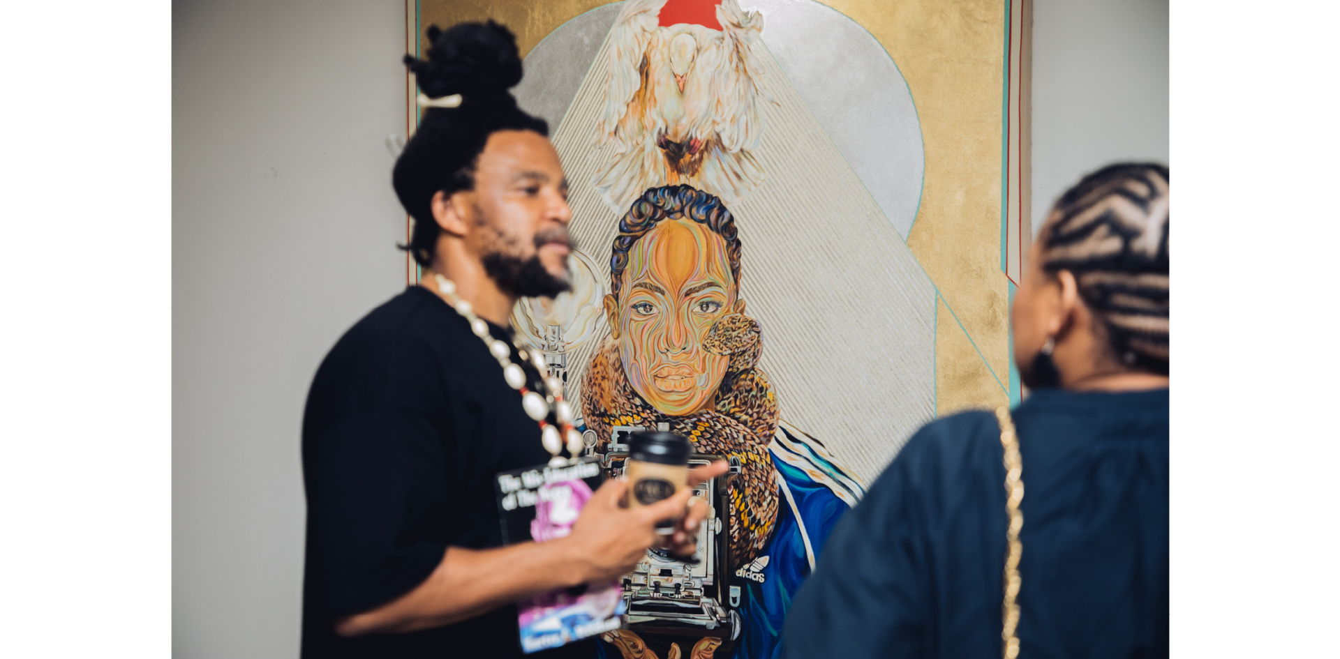 While widely recognised for these unflinching critiques, his practice extends beyond political portraiture. His large-scale paintings probe themes of land dispossession, capitalism, gender-based violence, and the spiritual cost of erasure. By drawing on ancestral prophecy, oral storytelling, Christian iconography, and cultural motifs, he positions his work as both deeply local and profoundly universal.